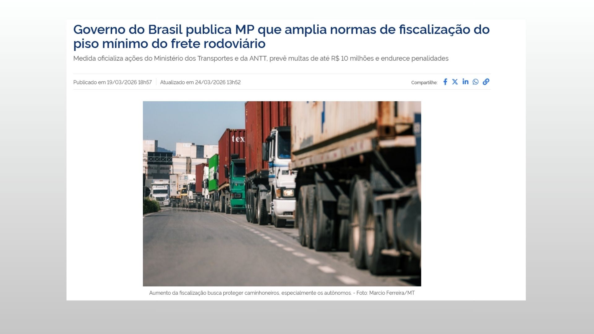 Piso mínimo de frete atualizado: veja o que mudou em 2026, as novas penalidades e os riscos de descumprimento. Saiba como sua empresa pode se adequar às regras da ANTT e evitar sanções milionárias.