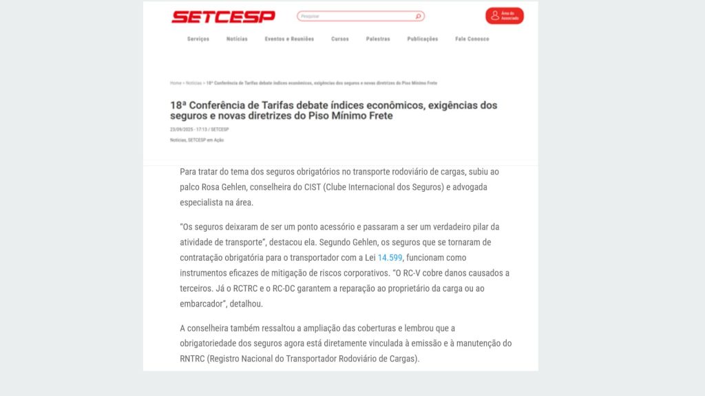 Para explicar e contextualizar os novos Seguros foram evidenciados pela Dra Rosa Gehlen os detalhes da Lei 14.599/2023, das Resoluções CNSP 472 e 478, ambas de 2024, da Resolução 6.068/2025 da ANTT e Portaria 27/2025, da SUROC.